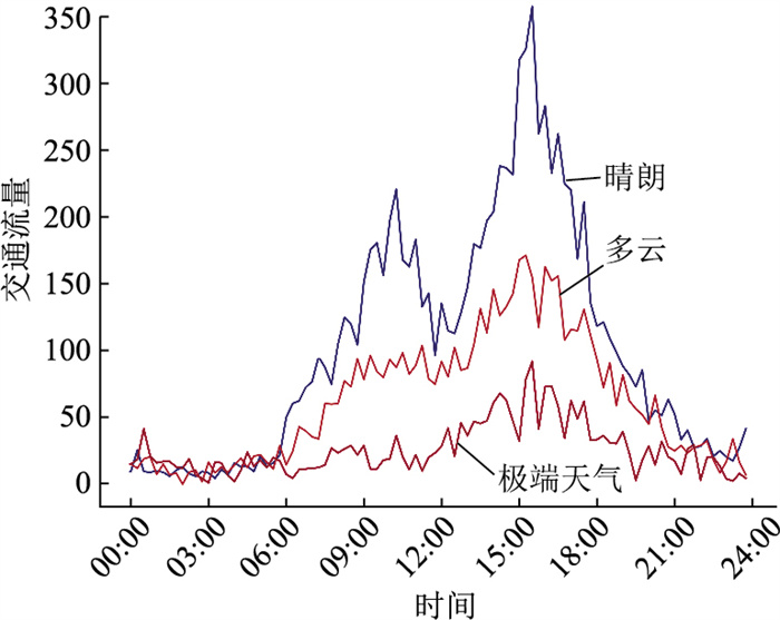 | 图 5 不同天气类型交通流量对比 Fig. 5 Traffic volume comparison with different weather types |