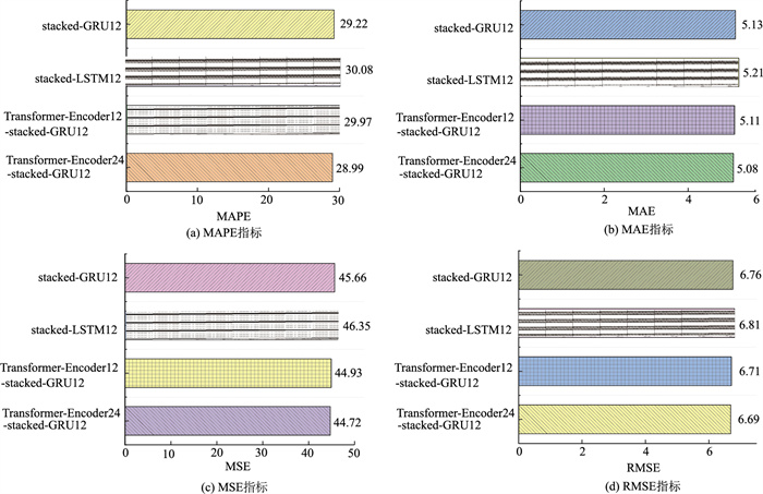 | 图 12 时间窗口为12的各模型预测性能指标 Fig. 12 Prediction performance indicators of various models with time window of 12 |