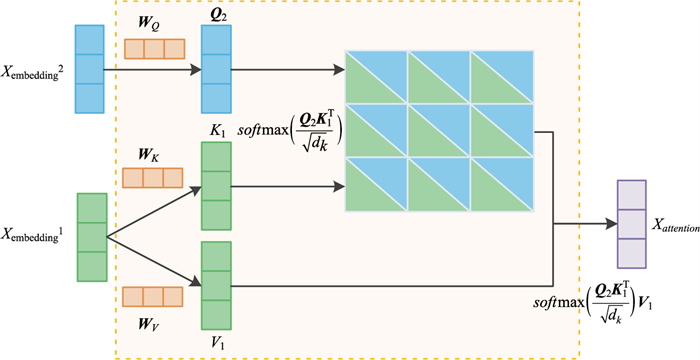 | $ \boldsymbol{Q}=X_{\text {embedding }^2} \cdot \boldsymbol{W}_Q, $ | (5) |