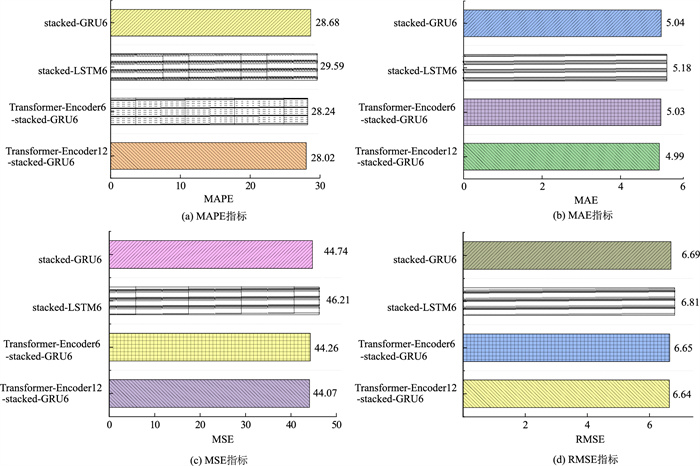 | 图 9 时间窗口为6的各模型预测性能指标 Fig. 9 Prediction performance indicators of various models with time window of 6 |