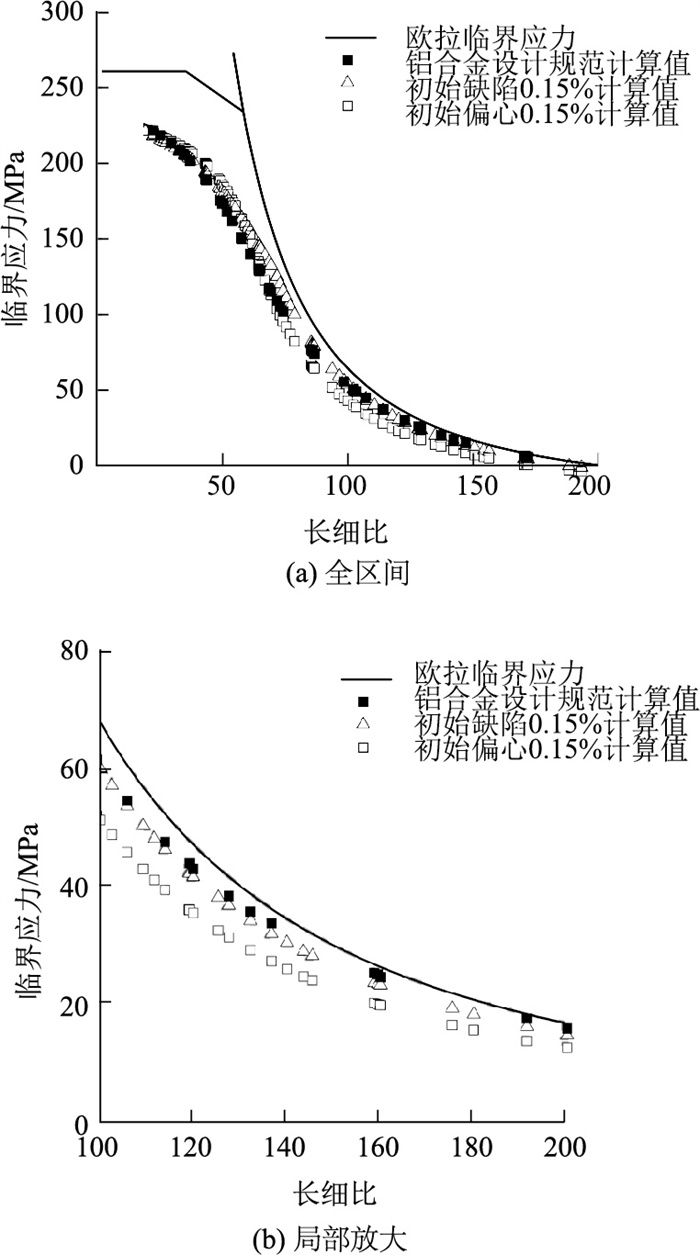 | 图 7 初始偏心临界应力图 Fig. 7 Diagrams of critical stress with initial eccentricity |