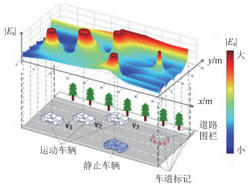 势场方法借鉴物理学中斥力场的概念,将车辆、障碍物等交通要素视为具有“风险场强”的物体,对主车产生排斥力,从而表征潜在风险[61],如图 2所示。该方法最早应用于机器人路径规划,后被引入自动驾驶,通过构建风险势能场,无需显式碰撞检测,即可实现对复杂动态场景的安全态势建模[62]。其优势在于对多目标环境下的风险关系具有更强的整体建模能力,尤其适合动态交通流场中的风险趋势判断与导航决策。