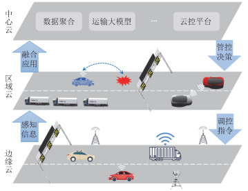 | 图 1 车路云一体化系统架构 Fig. 1 Architecture of vehicle-road-cloud integrated system |
