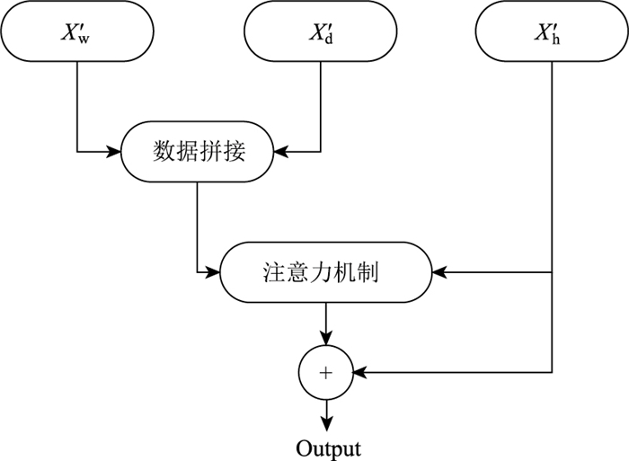 由于周期性的时间转移[5],周期性不能仅依赖于前几天的同一时刻。比如昨天的流量高峰出现在早上9:00,但今天的流量高峰可能由于天气等原因出现于9:10,所以用同一时刻的交通流数据进行特征融合存在缺陷,即每星期和每日的周期性并不严格,存在时间偏差。本研究通过注意力机制来解决这种偏差,如图 10所示。其中