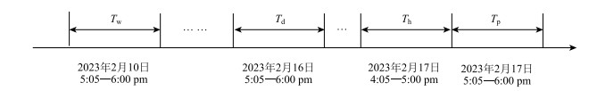 | $ X_{\mathrm{w}}=\left(X_{t_0-7 \times q+1}, X_{t_0-7 \times q+2}, \cdots, X_{t_0-7 \times q+T_{\mathrm{p}}}\right) \in \mathbb{R}^{C \times N \times T}, $ | (4) |