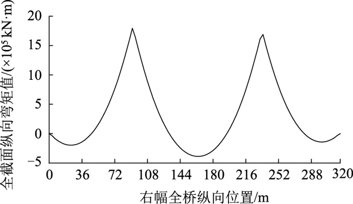 | 图 7 混凝土箱梁纵向弯矩分配 Fig. 7 Longitudinal bending moment distribution of concrete box girder |