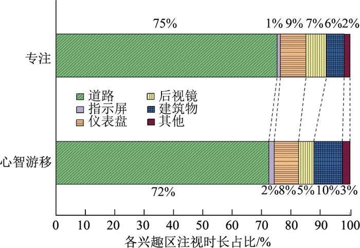 | 图 7 驾驶人不同兴趣区注视时长占比 Fig. 7 Proportions of driver 's gaze duration in different interest areas |