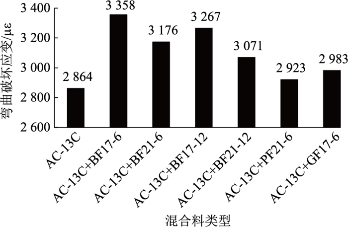 | 图 4 AC-13C弯曲破坏应变试验结果 Fig. 4 Bending failure strain test result of AC-13C |
