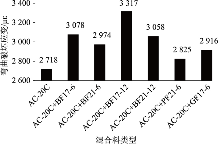 | 图 5 AC-20C弯曲破坏应变试验结果 Fig. 5 Bending failure strain test result of AC-20C |