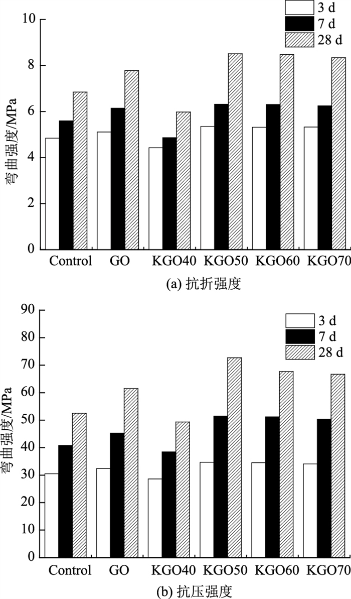 | 图 4 GO和KGO水泥基复合材料的力学性能 Fig. 4 Mechanical properties of GO and KGO cement-based composites |