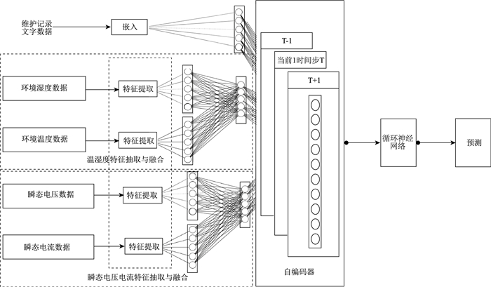 (2) 自编码融合方式的优势。相比于简单拼接或串联多模态数据,Autoencoder方式能更有效地完成降维与去冗余,将多模态特征映射到紧凑、统一的编码空间,减少噪声和重复信息。同时,自编码器的隐藏层实现了跨模态信息的互通协同,能够捕获诸如“高温环境伴随异常电流导致故障风险显著增加”等潜在关联,为后续预测提供了高质量的综合特征表示。