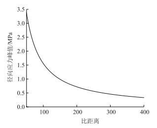 式中,R为比距离,R=r/rb,r为质点距药室中心的距离;σr为径向应力峰值;α为应力波衰减系数。