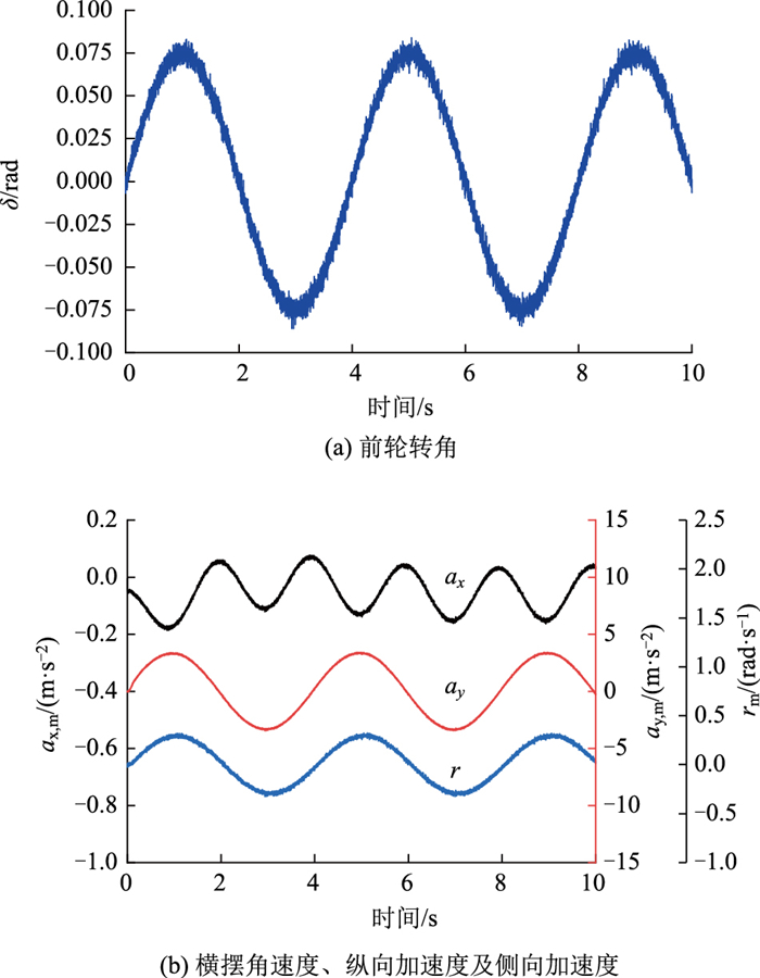 | 图 3 正弦转向工况下观测器输入与量测信号 Fig. 3 Observer inputs and measured signals in sine steering condition |