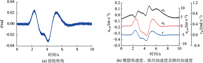 | 图 5 双移线工况下状态观测器的输入和量测 Fig. 5 Observer inputs and measured signals in double line condition |